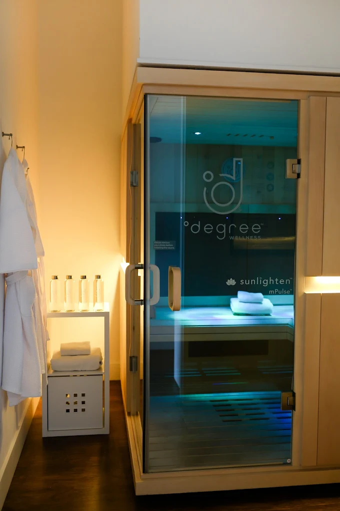 Stepping into Degree Wellness feels like entering a high-end recovery lounge where modern technology meets serious self-care. 🌬️💧 The space is clean, minimalist and calming: wood-accented rooms, soft lighting, and a reception desk that immediately sets the tone for rejuvenation. Whether you just finished a jet-ski session, a kayak outing, or simply want to reset your body and mind, this is your go-to.