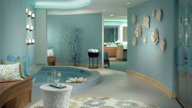 The decor speaks subtle luxury: soft blue and sand tones, floor-to-ceiling windows overlooking the surf, and thoughtfully placed lounges where you can sip citrus-infused water or herbal tea post-treatment. It’s relaxing, refined, and perfect for a full spa day or treat-yourself moment.