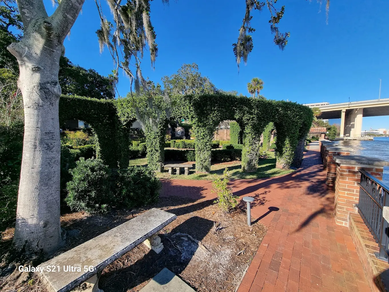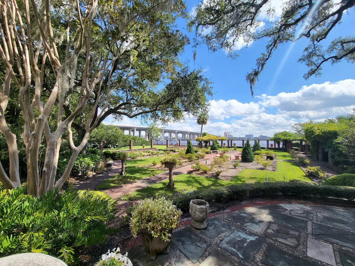 Pathways wind through meticulously maintained landscapes, reflecting pools shimmer beneath ancient oaks, and the entire area opens up to a panoramic view of the St. Johns River. It’s serene, romantic, and one of the most photographed locations in Jacksonville.