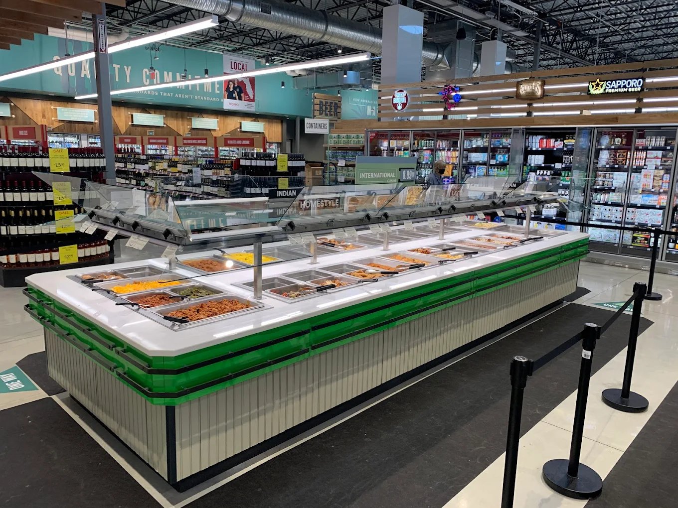 Inside, you’ll find open high ceilings, wide aisles, and curated displays that guide you effortlessly through produce, bakery, meat, seafood and specialty items. Every corner feels polished yet welcoming.