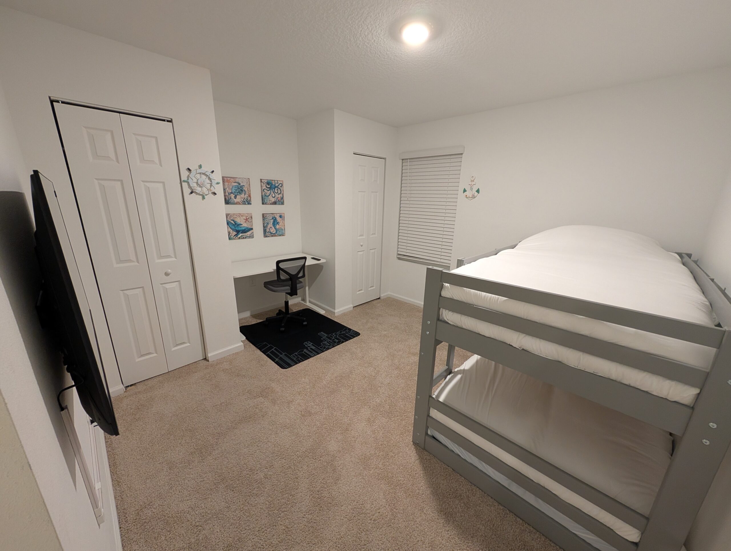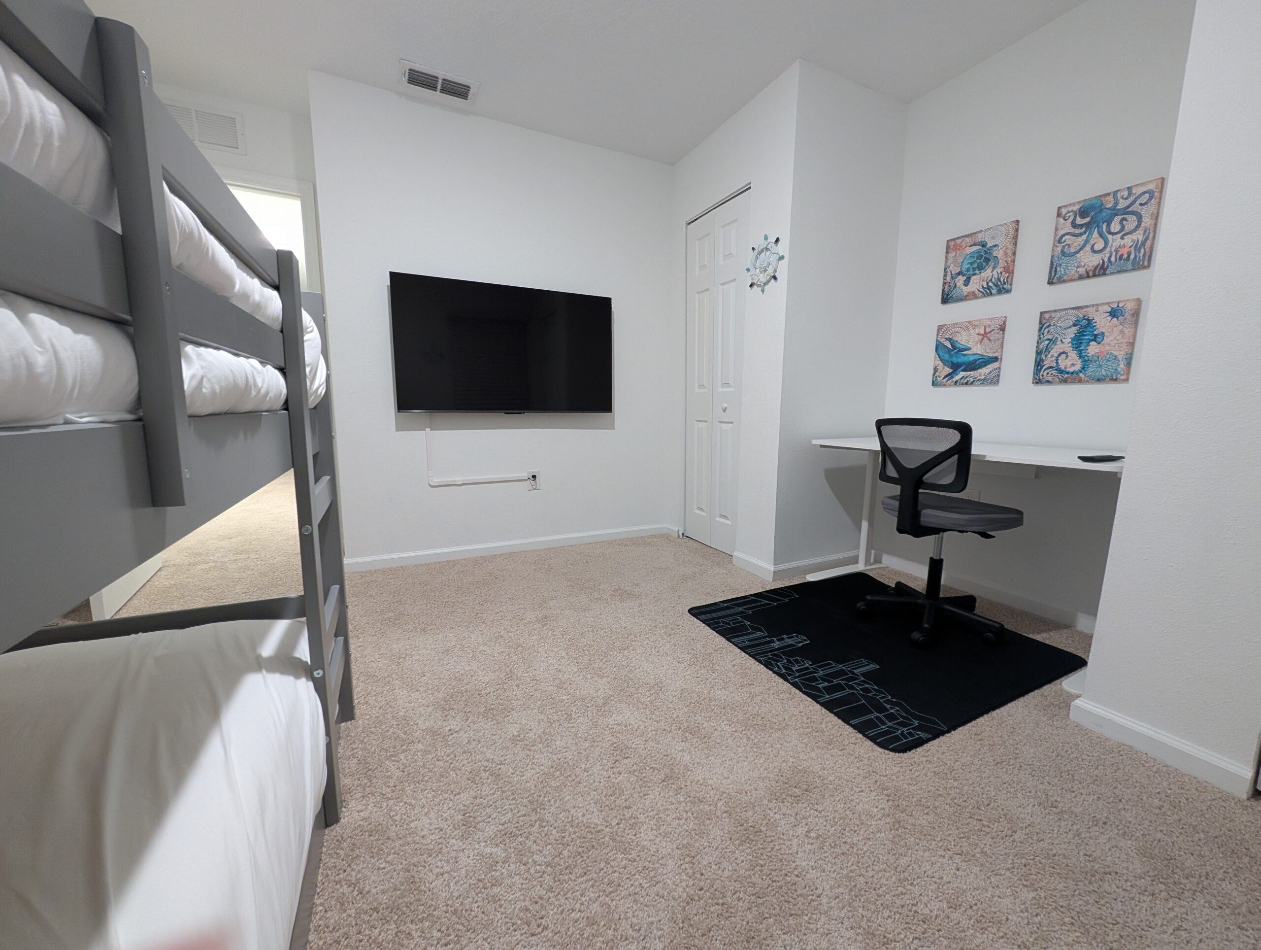 - Kid room with 2 bunk beds, and a work desk for work at home
